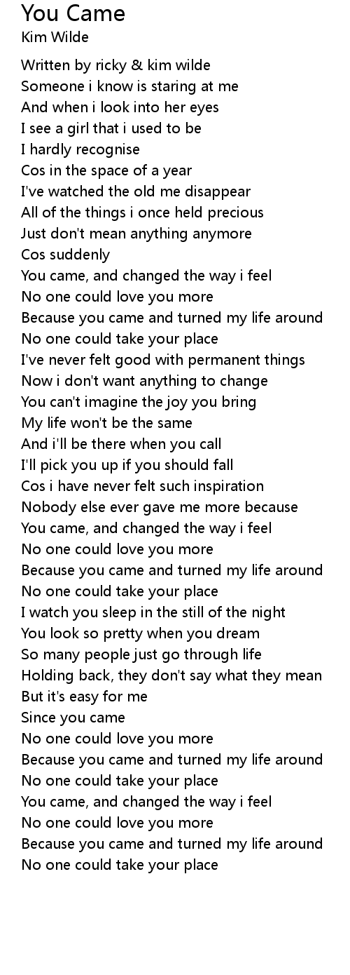 You came, and changed the way i feel |