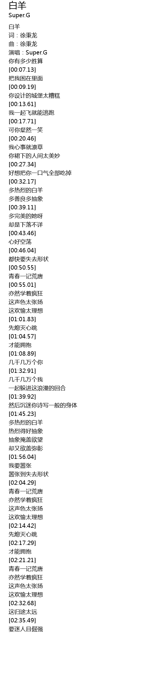 | [00:35.32] | 多热烈的白羊 |