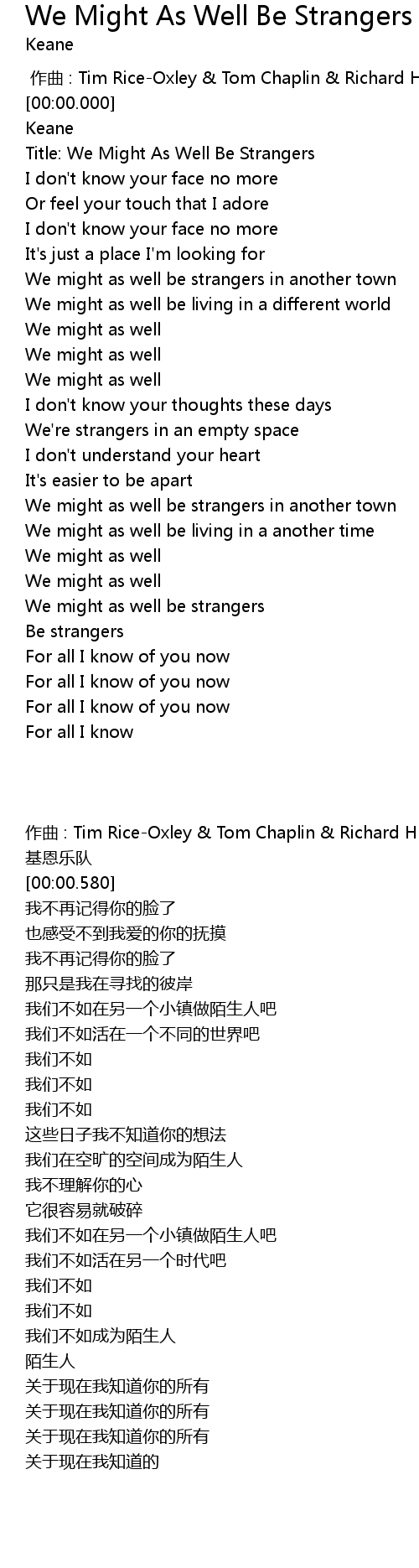 | [00:00.580] | Title: We Might As Well Be Strangers |