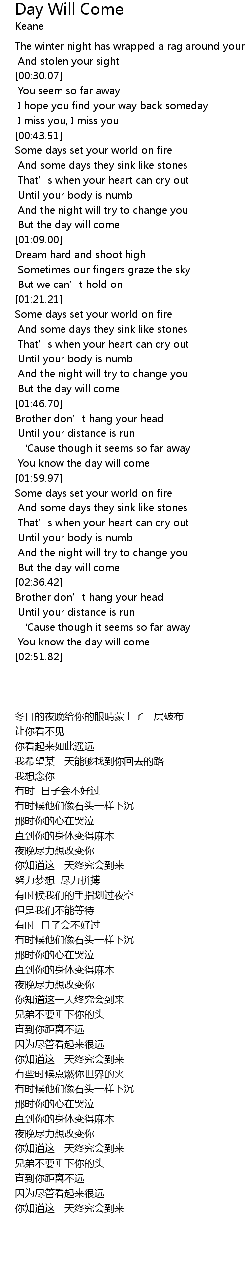| [01:13.63] | Sometimes our fingers graze the sky |