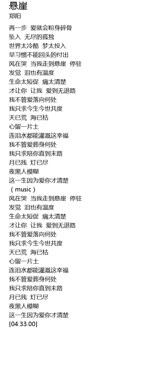 | [01:04.31] | 风在哭 当我走到悬崖 停驻 |