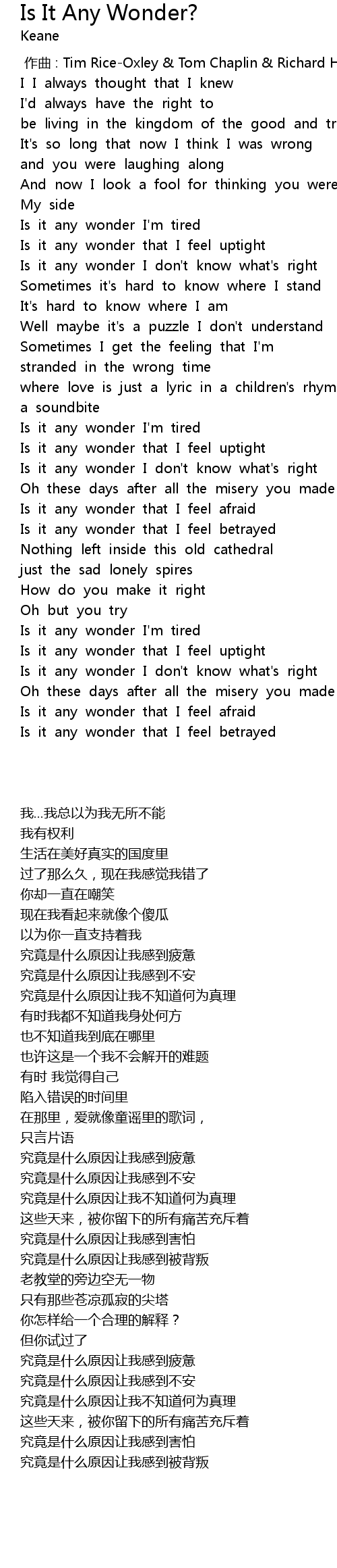 | [00:00.00] | zuò qǔ : Tim RiceOxley Tom Chaplin Richard Hughes |