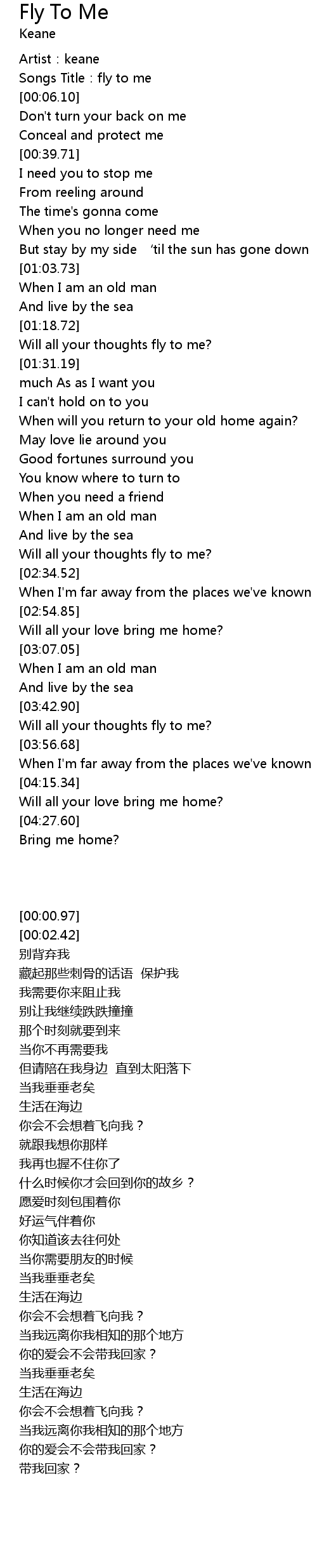 | [00:02.42] | Songs Title:fly to me |