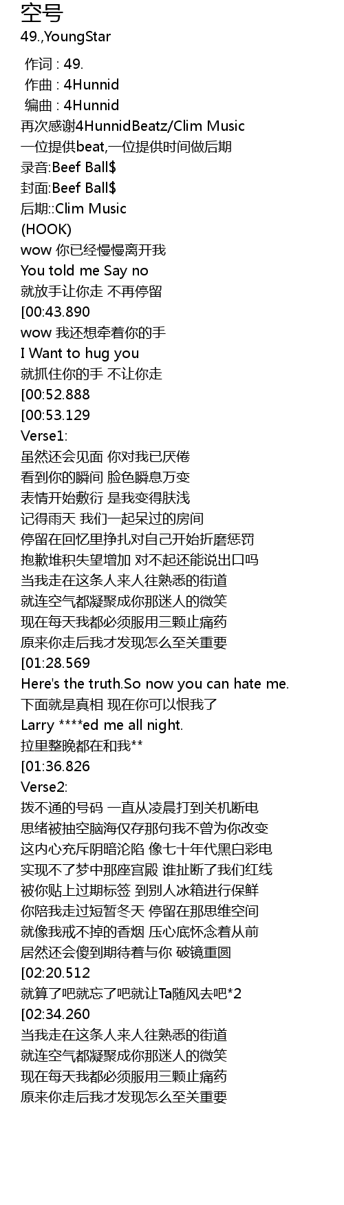 | [00:00.233] | 再次感谢4HunnidBeatz/Clim Music |