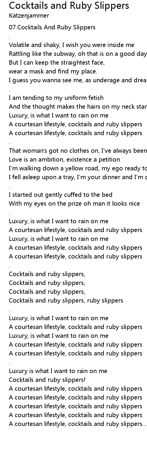 A courtesan lifestyle, cocktails and ruby slippers... |