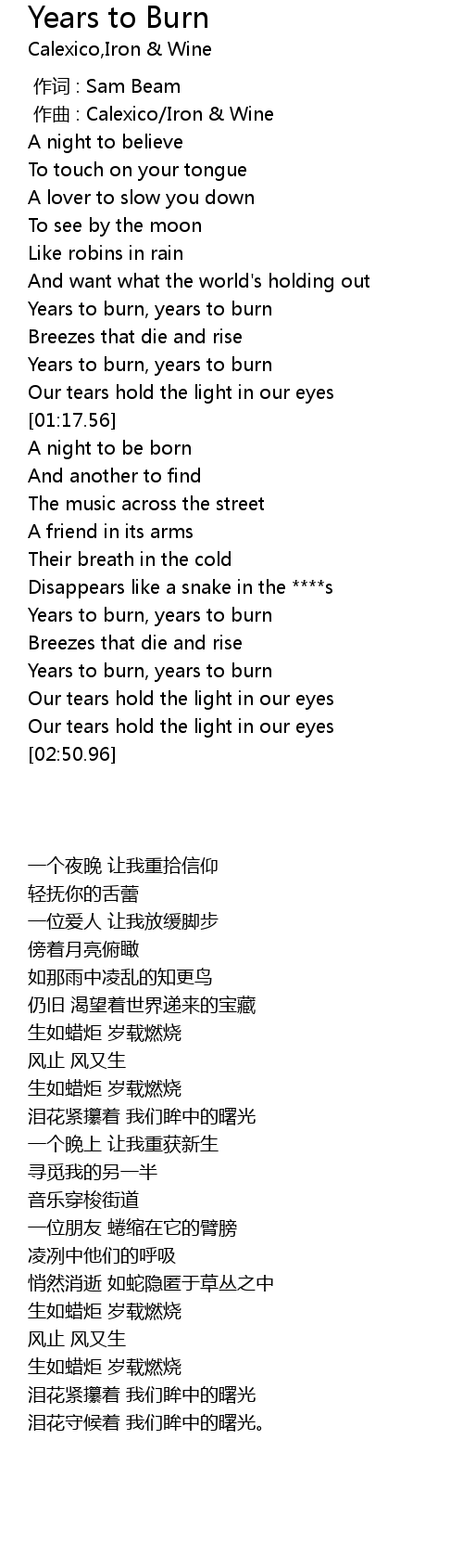 | [00:01.000] | 作曲 : Calexico/Iron & Wine |