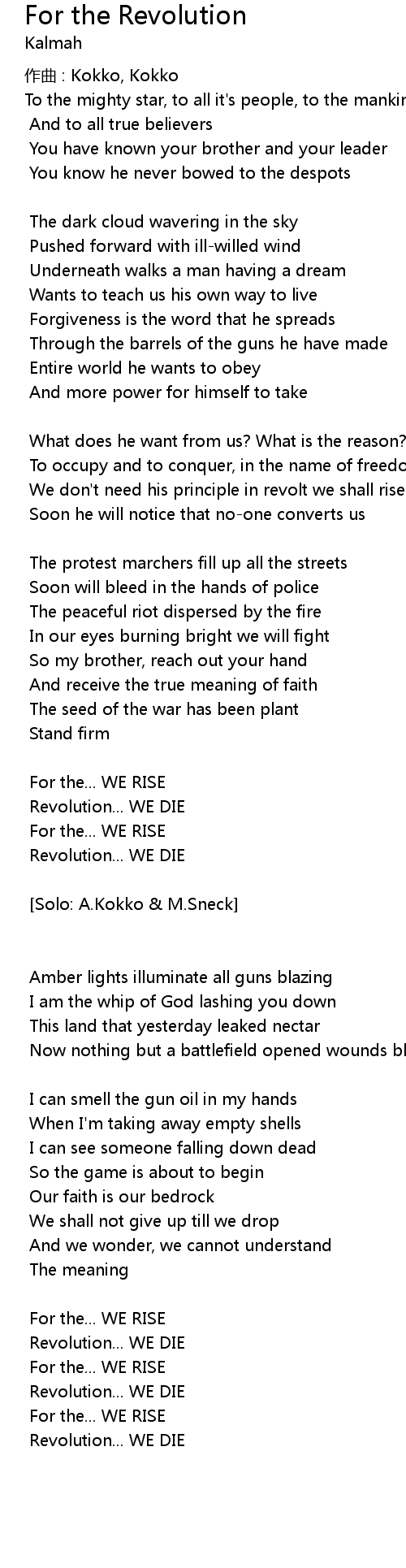 | Song | For the Revolution |