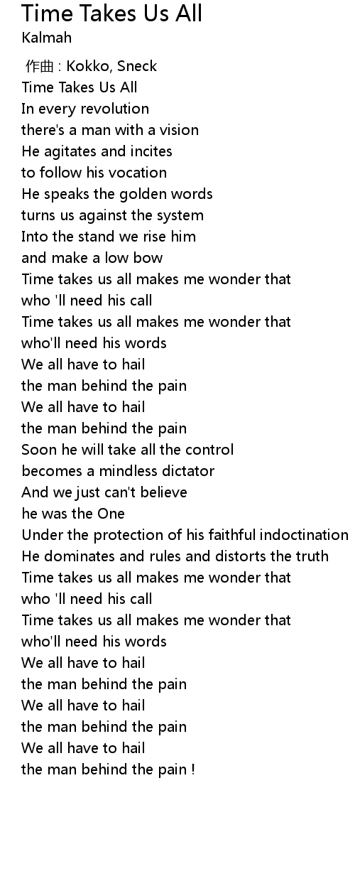| [00:00.07] | Time Takes Us All |