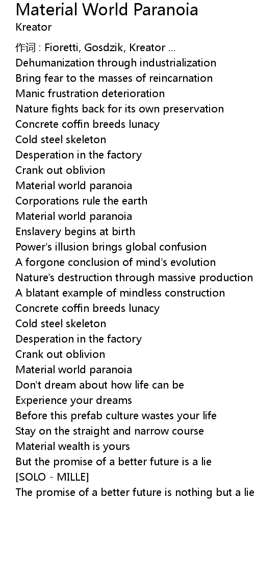 | Song | Material World Paranoia |