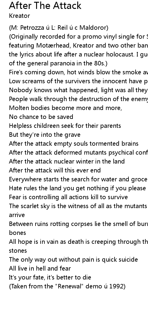 | (Originally recorded for a promo vinyl single for Sounds magazine, England, featuring Motærhead, Kreator and two other bands I forgot about. Ventor wrote the lyrics about life after a nuclear holocaust. I guess it reflects some kind of the general paranoia in the 80s.) | |