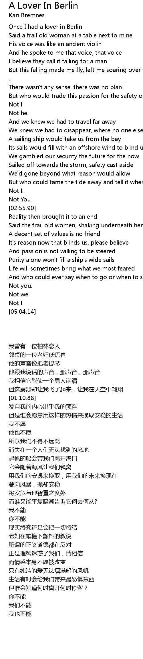| [00:36.48] | Said a frail old woman at a table next to mine |