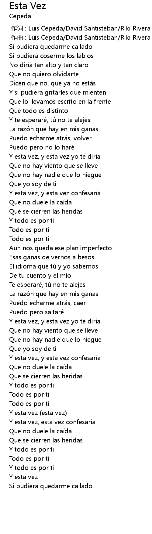 | [00:00.000] | zuò cí : Luis Cepeda David Santisteban Riki Rivera |