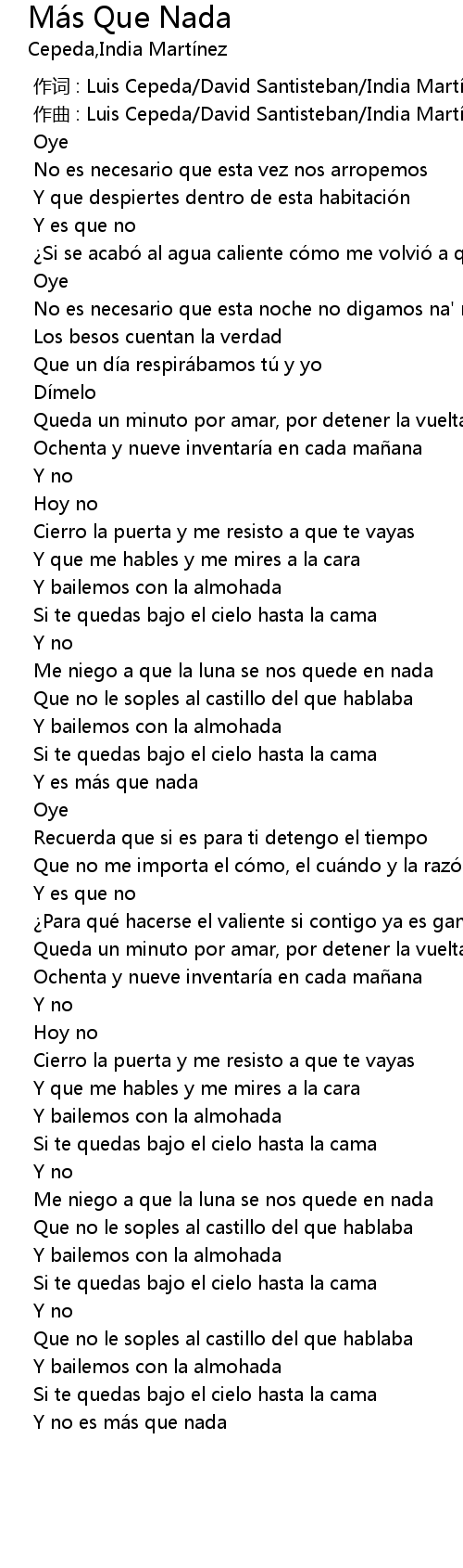 | [00:00.000] | zuò cí : Luis Cepeda David Santisteban India Martí nez |