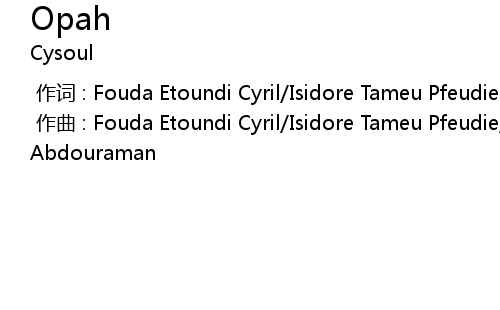 | [00:00.00-1] | 作曲 : Fouda Etoundi Cyril/Isidore Tameu Pfeudie/Issa Abdoul Abdouraman |