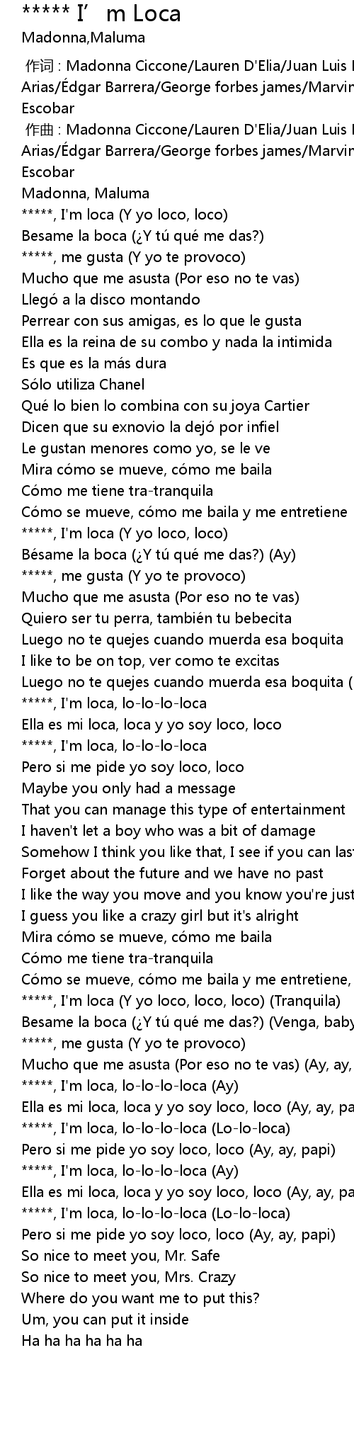 | [01:24.79] | *****, I'm loca, lo-lo-lo-loca |
