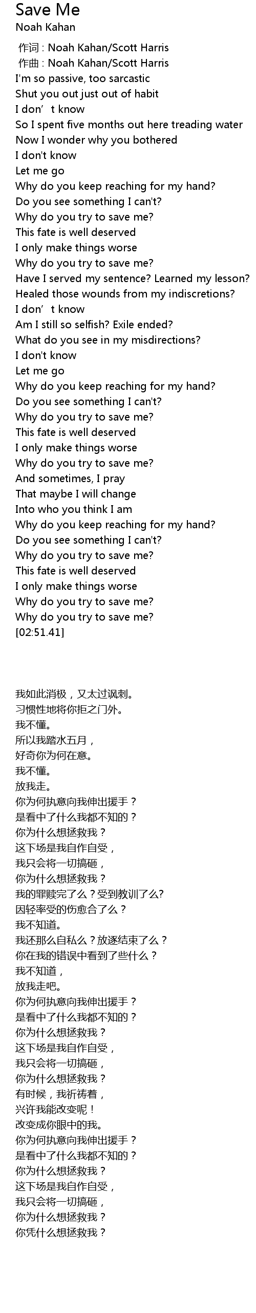 | [00:40.84] | Why do you try to save me? |