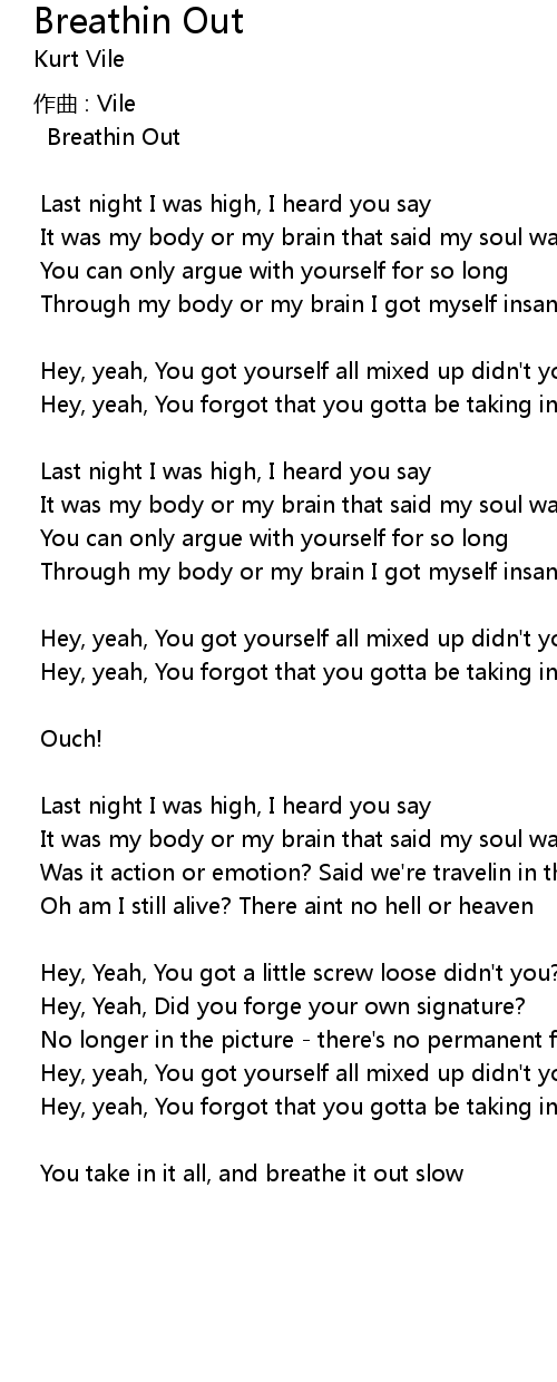| Hey, yeah, You forgot that you gotta be taking in it all and breathin out slow | |