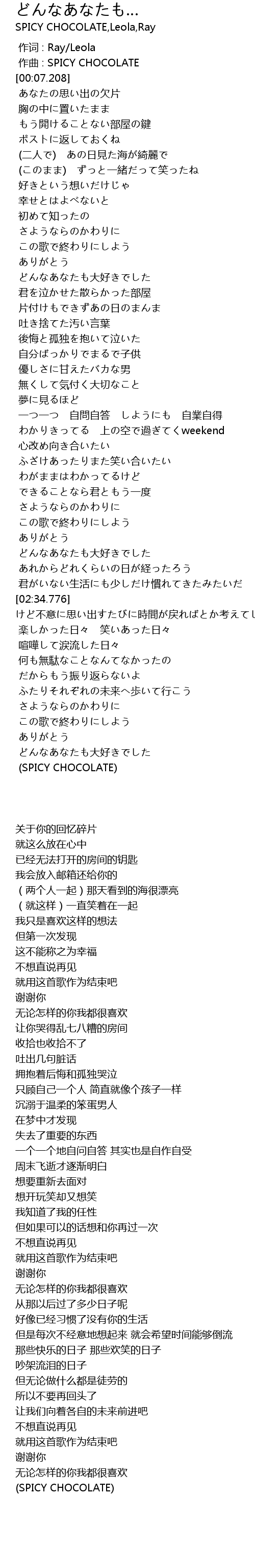 | [03:13.274] | どんなあなたも大好きでした |