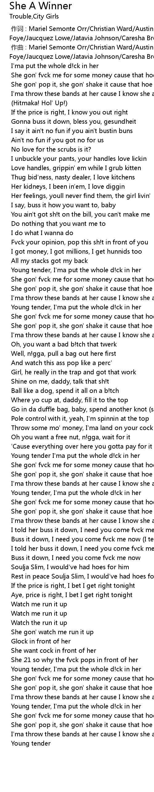 | [02:23.608] | Young tender, I'ma put the whole d!ck in her |