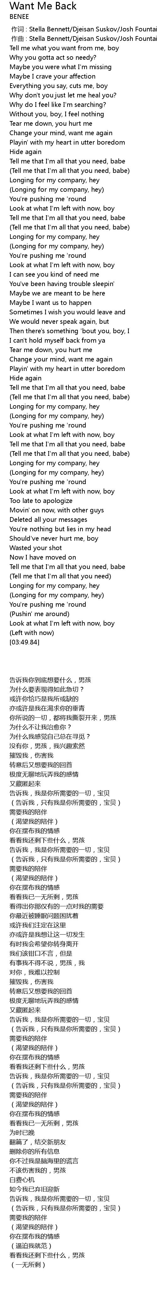 | [00:49.21] | Tell me that I' m all that you need, babe |