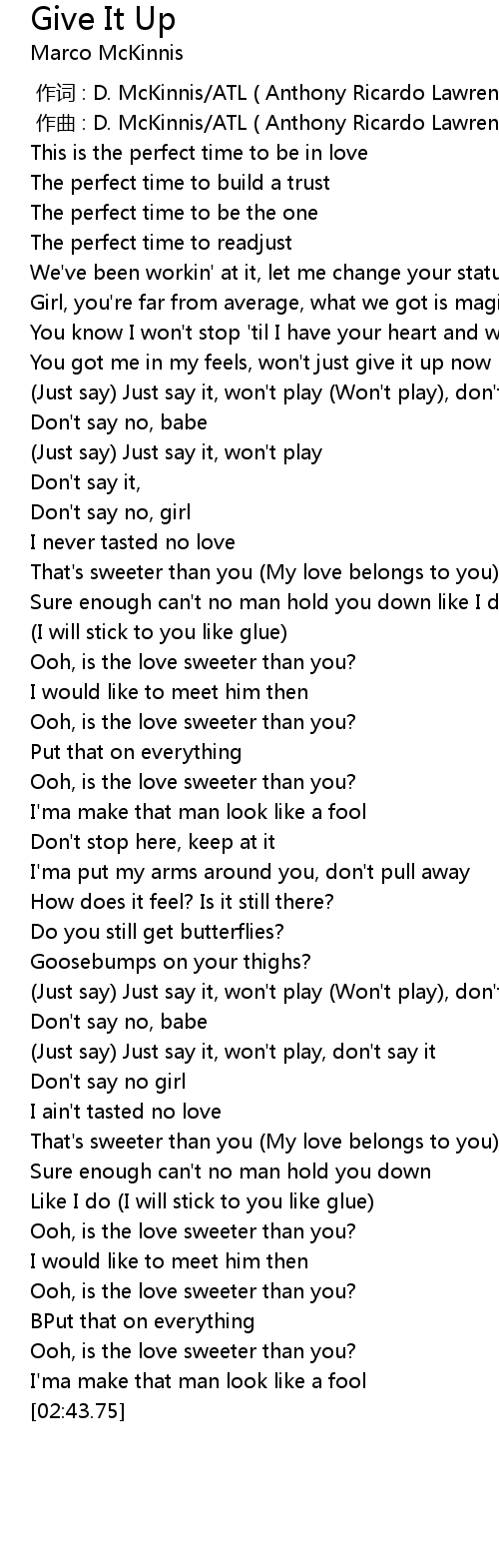 | [00:44.96] | You got me in my feels, won' t just give it up now |