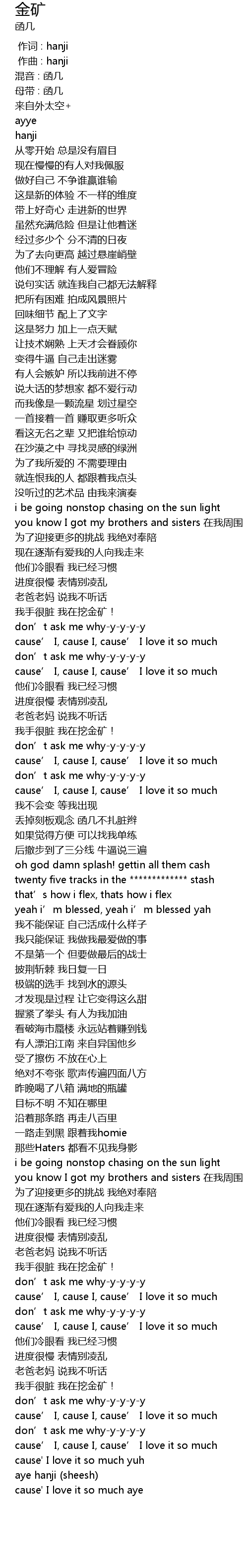 | [03:01.738] | 我手很脏 我在挖金矿! |