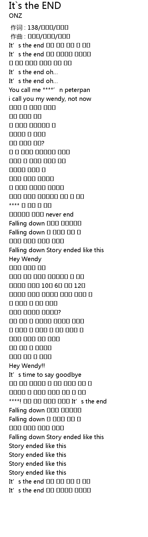 | [02:00.386] | ****! 너랑 나랑 똑같네 제목은 It’s the end |