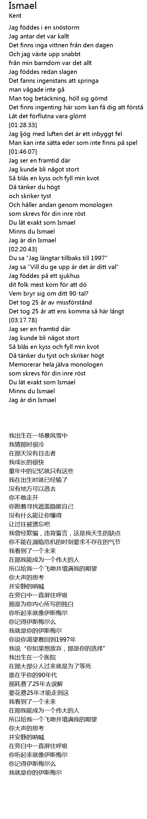 | [03:47.17] | Jag r din Ismael |