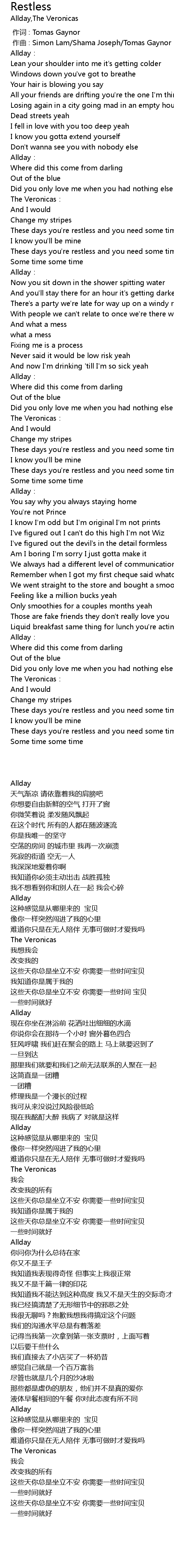 | [00:00.000] | 作词 : Tomas Gaynor |