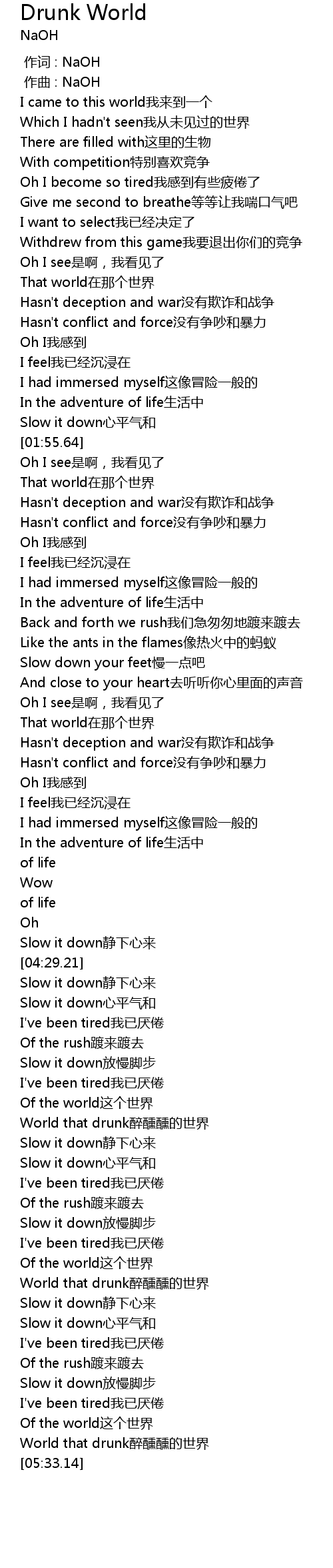 | [05:05.95] | World that drunk醉醺醺的世界 |