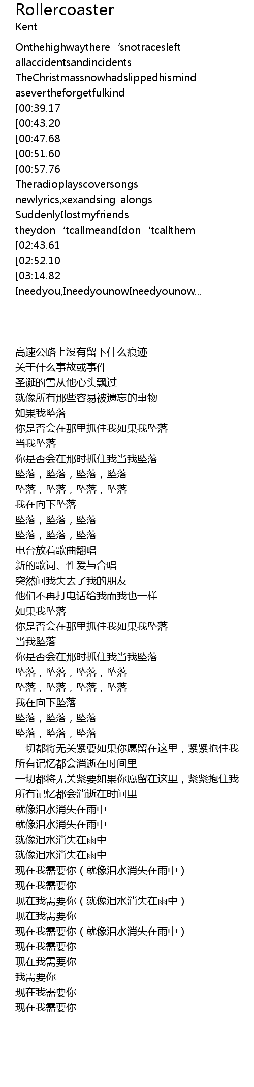 | [03:00.68][02:43.61] | Nothingmattersifyoustayhere, holdmetight |