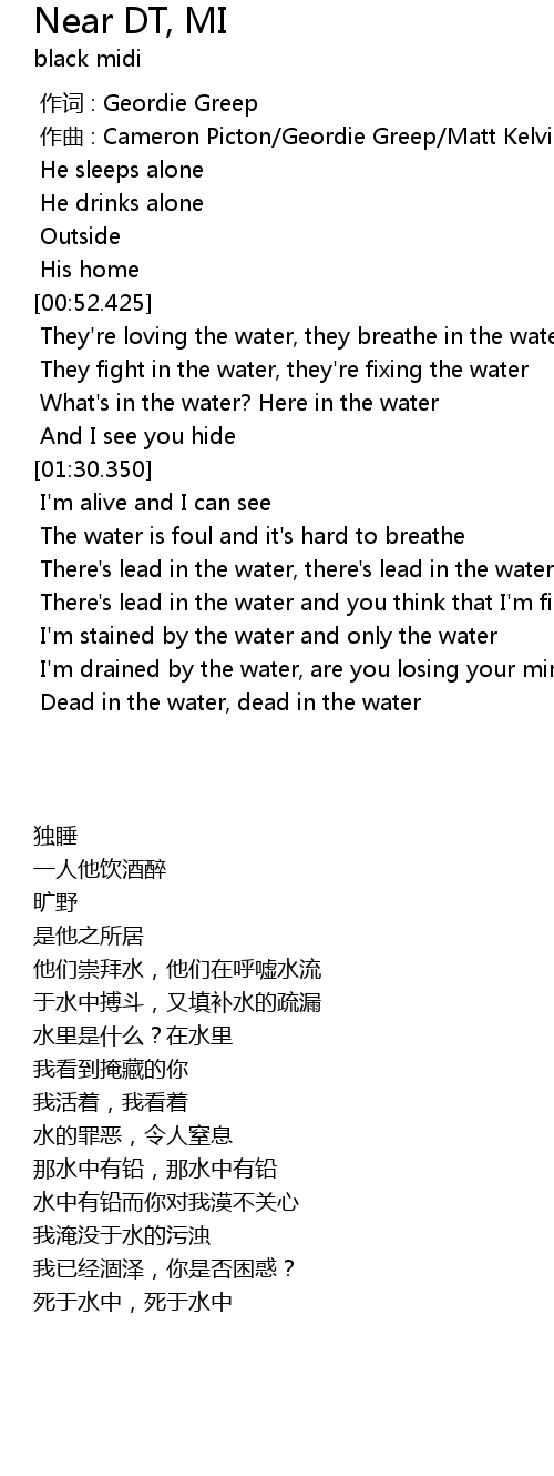 | [01:35.361] | There's lead in the water, there's lead in the water |