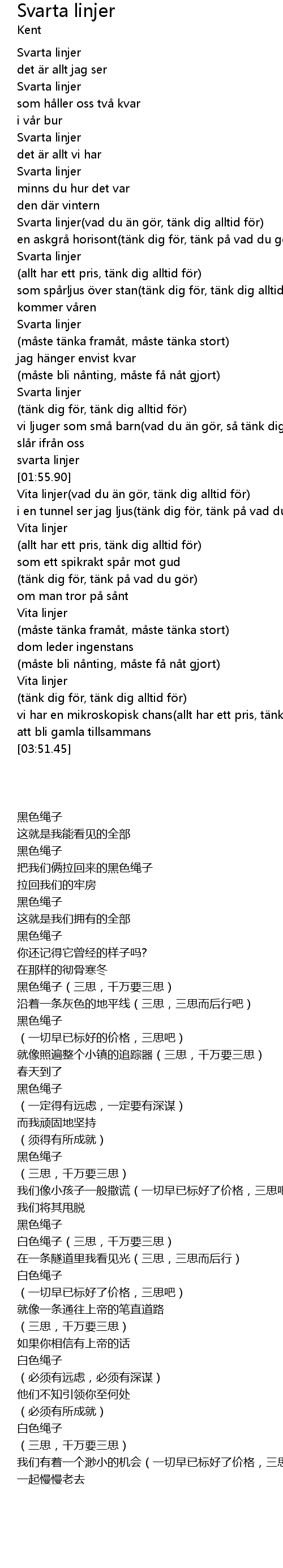 | [00:57.78] | Svarta linjer vad du n g r, t nk dig alltid f r |