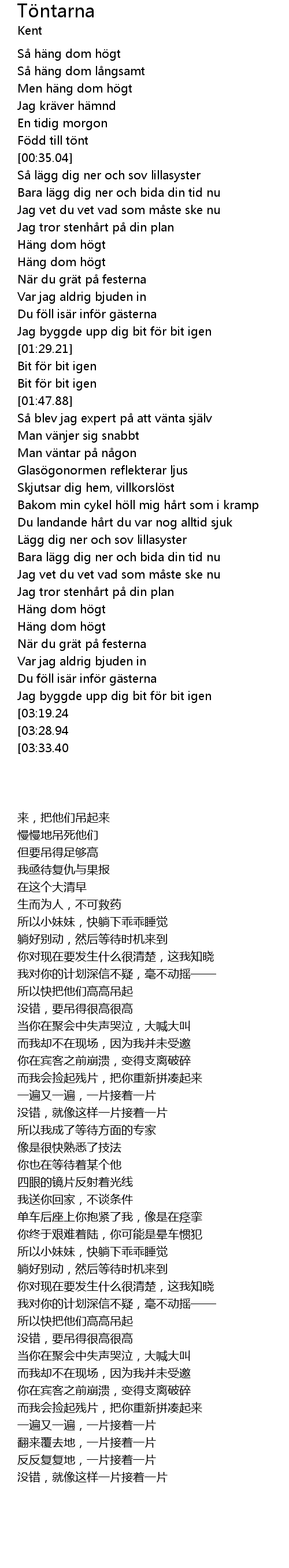 | [00:56.74] | Häng dom högt |