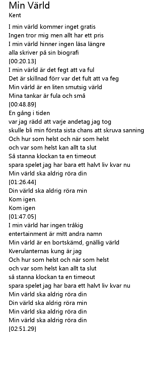 | [00:42.16] | Min värld är en liten smutsig värld |