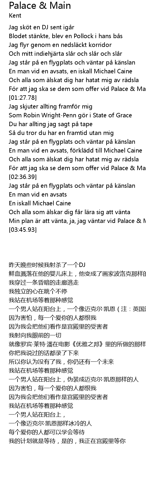 | [03:39.98] | Min plan r att v nta, ja, jag v ntar vid Palace Main |
