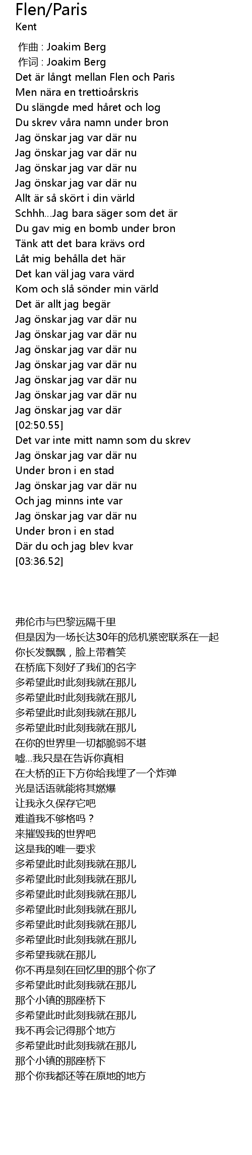 | [00:13.12] | Det r l ngt mellan Flen och Paris |
