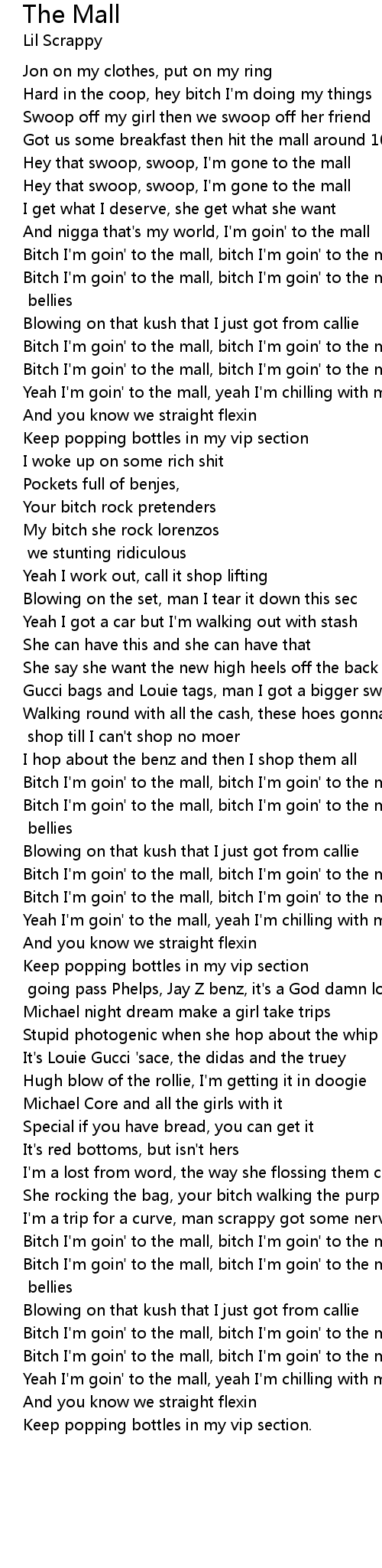 Bitch I'm goin' to the mall, bitch I'm goin' to the mall |
