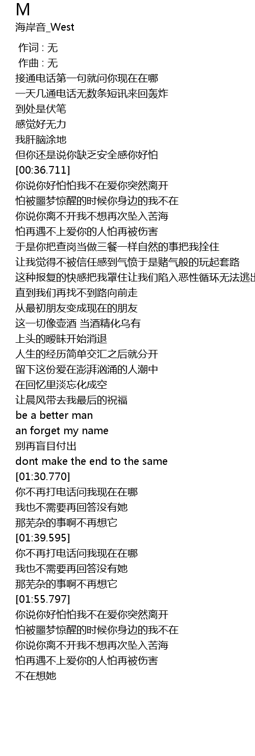 | [02:06.837] | 你说你离不开我不想再次坠入苦海 |