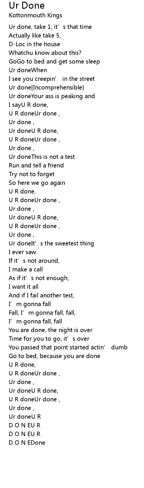 | Ur doneU R done, | |