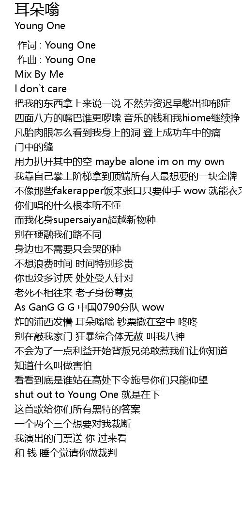 | [01:45.174] | shut out to Young One jiu shi zai xia |