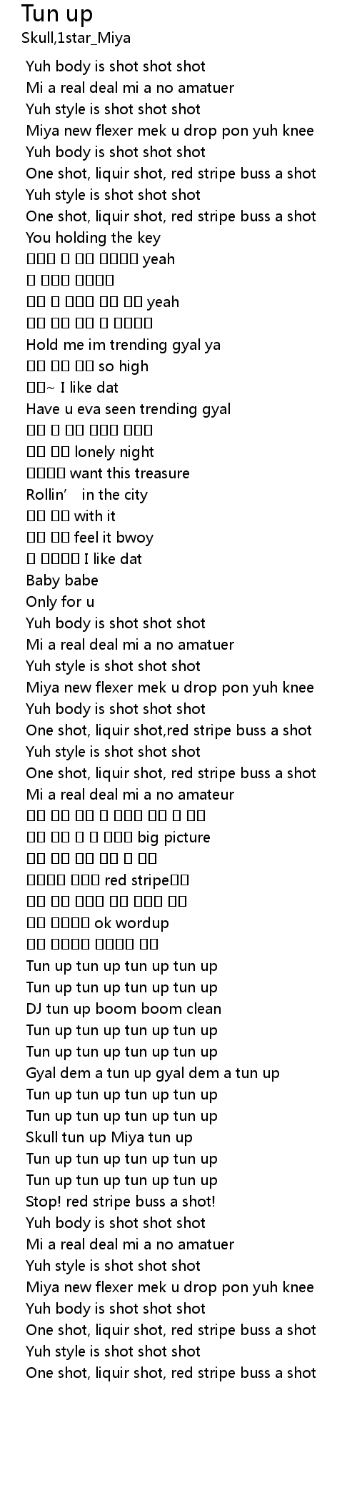 | [01:17.845] | One shot, liquir shot,red stripe buss a shot |