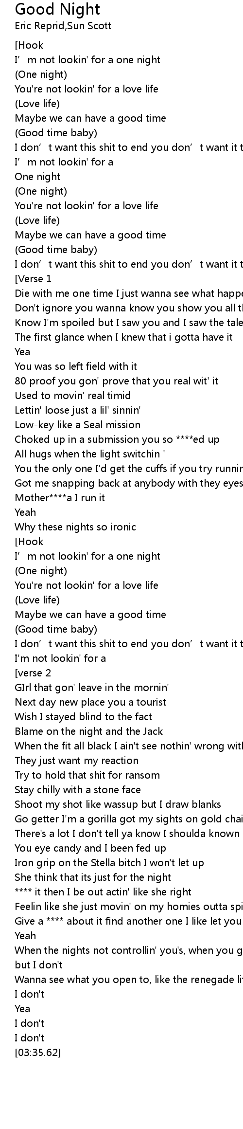 | [01:35.35] | I’m not lookin' for a one night |