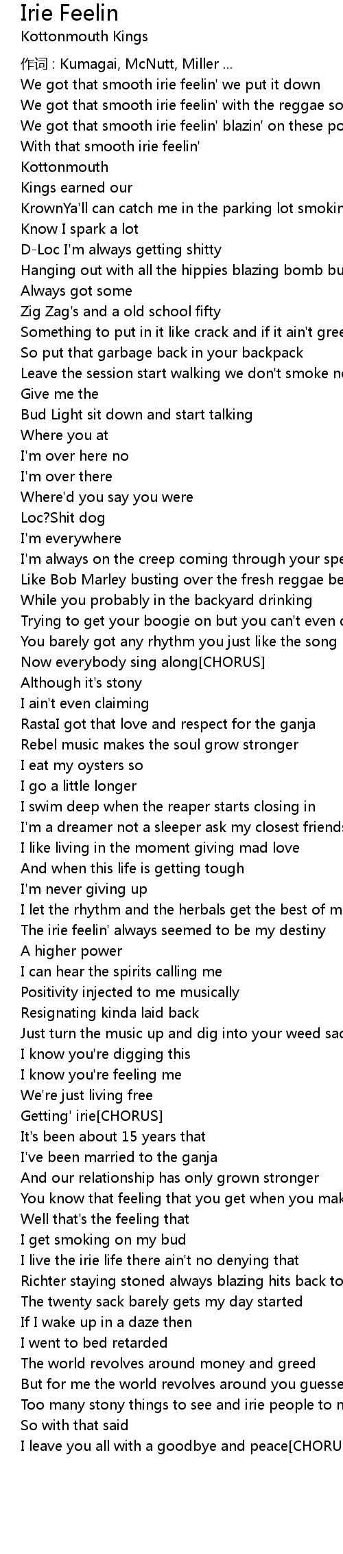 | CHORUS We got that smooth irie feelin' we put it down | |