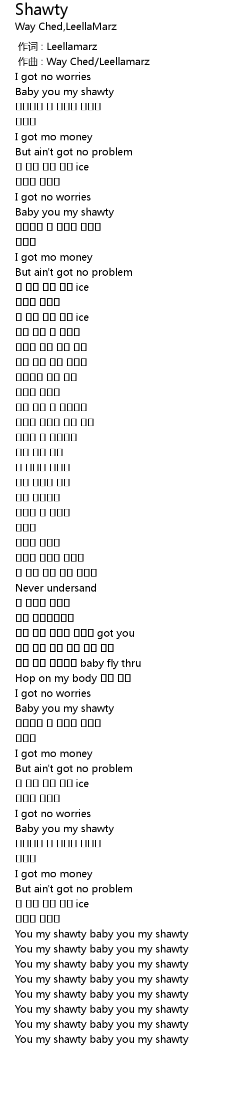 | [01:16.33] | Baby you my shawty |