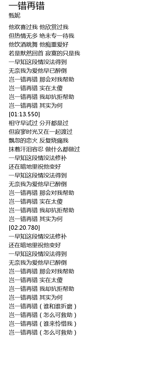 | [02:03.380] | 岂一错再错 那会对我帮助 |