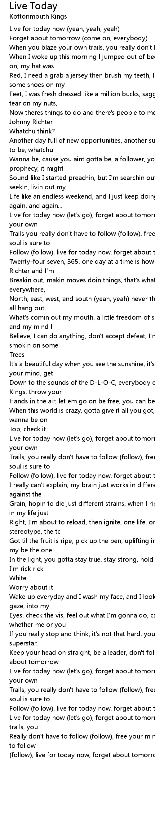 (follow), live for today now, forget about tomorrow (tomorrow) |