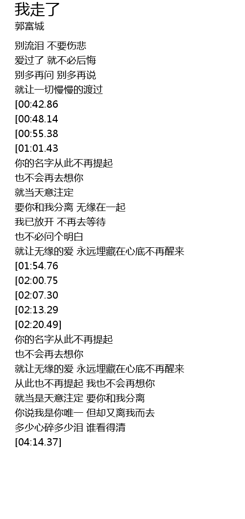 | [03:50.56] | 就当是天意注定 要你和我分离 |