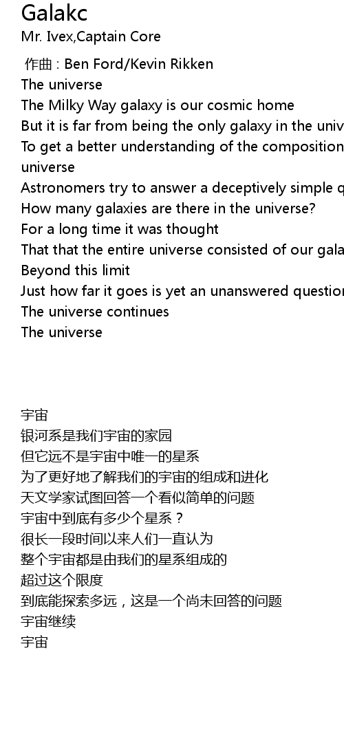 | [00:44.49] | The Milky Way galaxy is our cosmic home |