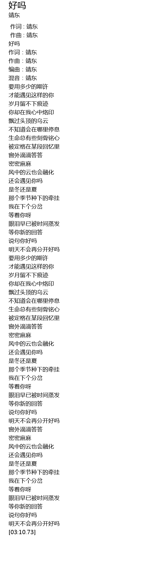 | [00:08.34] | 作词:靖东 |